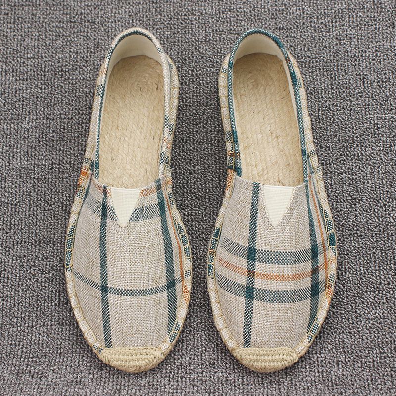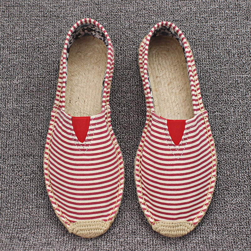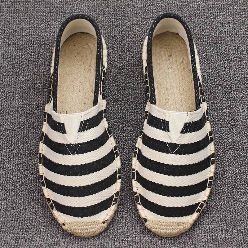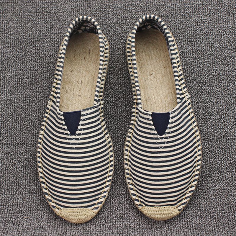 Men's Casual Stripe PU Decor Slip-On Canvas Espadrilles