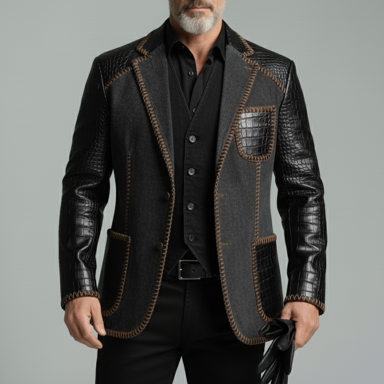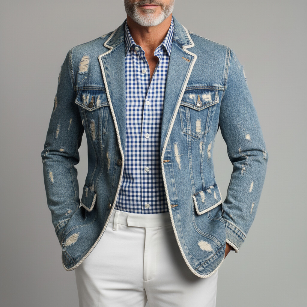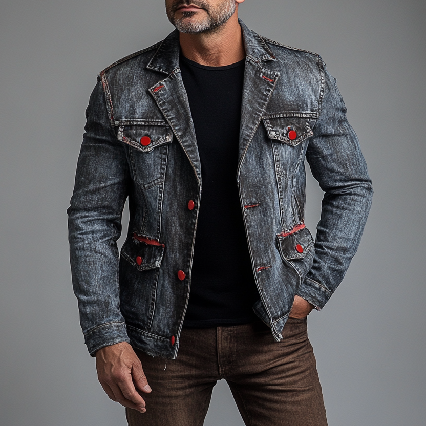 Men's Street Notch Lapel Contrast Buttons Washed Denim Jacket