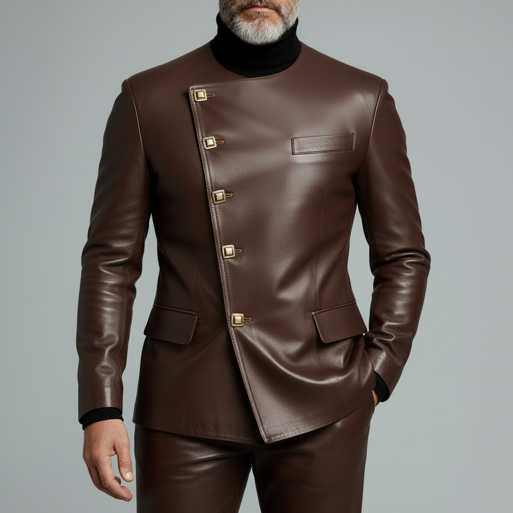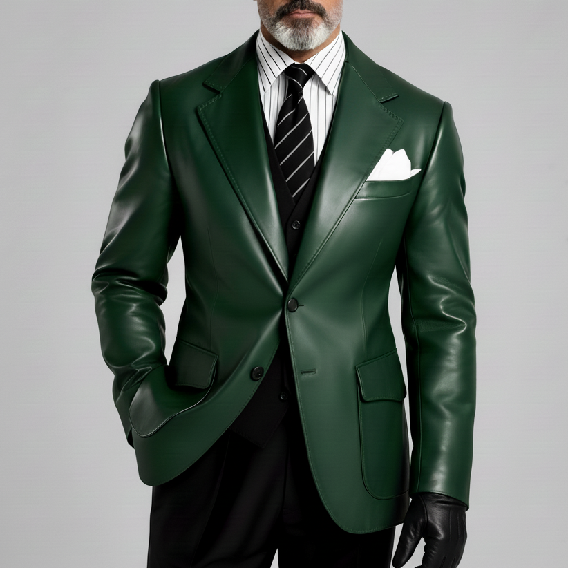 Men's PU Leather Lapel Single Breasted Contrast Binding Blazer